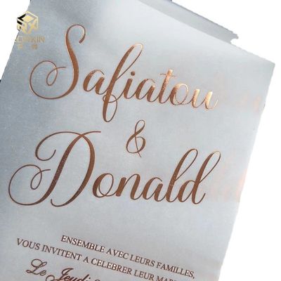 | Hoog licht: | Elegante het Huwelijksuitnodigingen van het Folievelijn,Buitensporige het Huwelijksuitnodigingen van het Folievelijn,Doorzichtig Velijndocument voor Uitnodigingen |